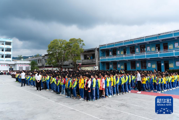 9月2日,三塘镇中心学校开学典礼现场。(涂雯婧 摄)