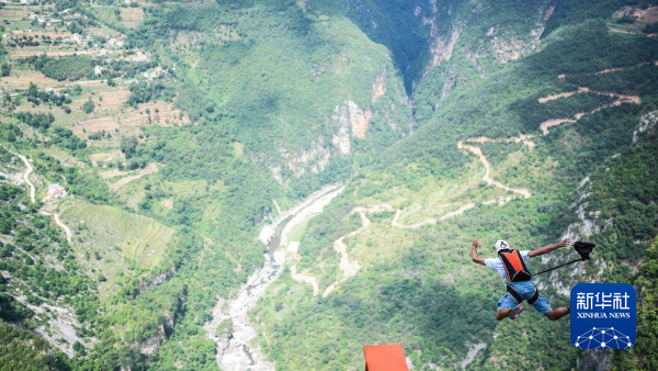 作为世界首座山区峡谷千米级跨径桥梁,坝陵河大桥因其高空蹦极项目以370米的高度被吉尼斯世界纪录认证为世界最高的商业蹦极,成为越来越多国际低空运动爱好者的“打卡地”。