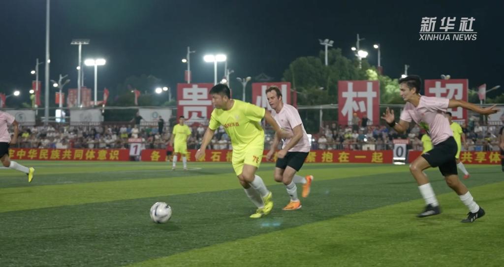 9月28日晚,“发现中国之美·相约贵州村超”国际友谊赛在榕江县火热开赛,来自阿根廷、哥伦比亚、墨西哥等15个国家近30位外交官齐聚“村超”足球场,与当地球队切磋球技,尽情感受足球的魅力和“村超”的快乐。