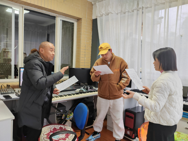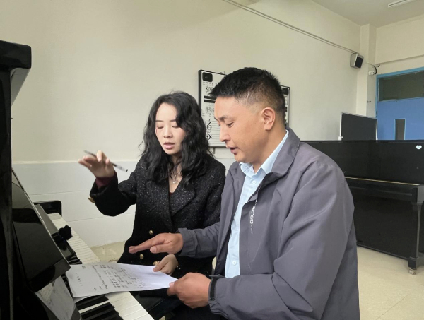 10月16日一大早,在遵义市务川自治县石朝乡中心学校音乐教室,高峰村村干部张懿林正和搭档代瑜排练原创歌曲《云上石朝等着你》,为参加县里“村光大道”演出积极准备。
