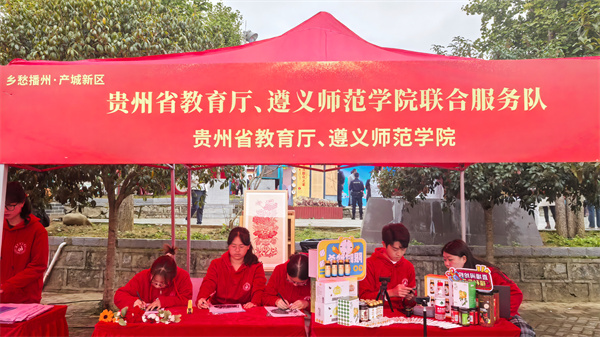 遵义师范学院布展5个项目:贵州农产品直播,依托学校“一带一路”黔货出海贵州遵义跨境电商人才培训基地,以现场直播的方式,宣传推广贵州农产品;剪纸绘画书法手工艺品互动展示,教当地小学生剪纸、制作手工艺品等,体验传统文化的魅力;心理健康宣传咨询,向现场村民、学生发放心理健康知识宣传手册,开展心理健康团体辅导活动,增进大家对心理健康的正确认识;理论宣讲和推普活动,通过普通话绕口令活动、文言文朗诵等,宣讲党的创新理论,展示国家通用语言文字的魅力;家电维修及用电安全宣传,为村民免费维修吹风机等电器,科普电器及相关安全知识。