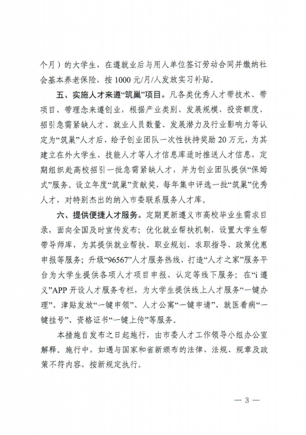 近日,遵义市委人才工作领导小组印发了《遵义集聚高校毕业生留(来)遵行动六条措施》(以下简称《六条措施》)。遵义市委组织部有关负责同志就《六条措施》有关情况,回答了记者提问。
