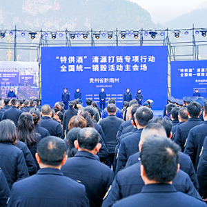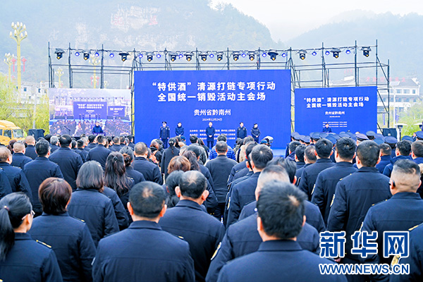 新华网贵阳12月25日电(刘昌馀)12月24日,“‘特供酒’清源打链专项行动罚没物资全国统一销毁活动”主会场活动在贵州省黔南布依族苗族自治州龙里县举行,活动在全国10个省(区、市)相关城市设分会场,主、分会场视频连线同步销毁,由国家市场监督管理总局组织开展。