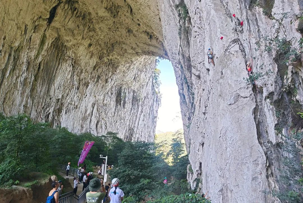 格凸河景区是4A级旅游景区,集岩溶、山、水、洞、石、林组合之精髓,融雄、奇、险、峻、幽为一身,非常适合开展攀岩运动。目前,格凸河景区已开发的攀岩线路有278条,这些线路分布在景区的奇峰异石之间,每个岩壁都各有特点,攀爬难易程度不一,为攀岩者提供了丰富的选择和挑战。尤其随着各种攀岩赛事的举办,格凸河攀岩品牌逐渐打响,引来不少国内外游客体验打卡,为景区发展注入活力。