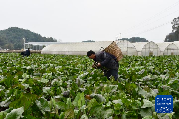 村民在贵州凤冈县绥阳镇玛瑙村蔬菜基地里采摘蔬菜。新华社记者李凡 摄
