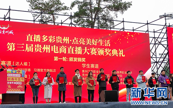 开幕仪式现场举行了“直播多彩贵州·点亮美好生活”第三届贵州电商直播大赛颁奖典礼。(顾洵)