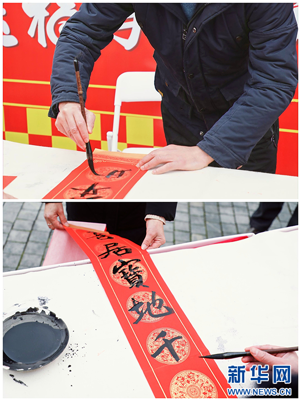 图为手书春联现场。新华网发