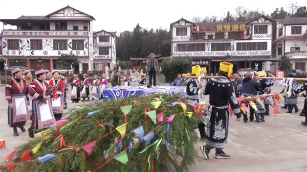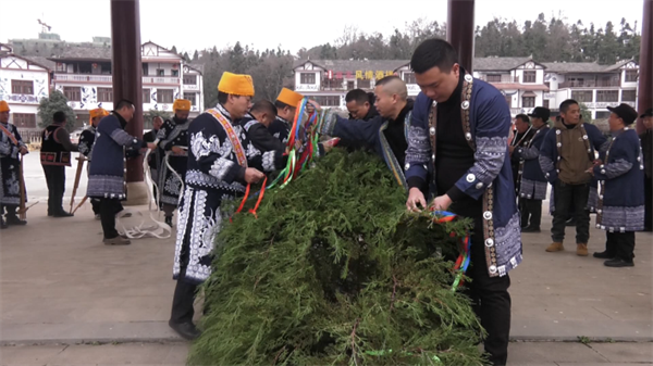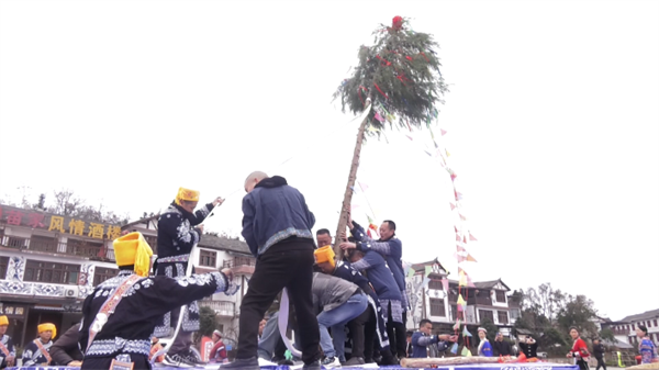 活动中,高高的“花树”被装饰一番,披红挂带立于跳花场中央,苗族同胞按照民俗举行了“请花树、栽花树、敬花树、跳花树”等仪式。