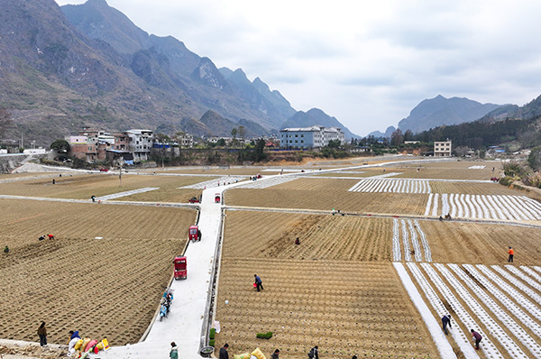 人勤春来早,农忙正当时。这几天,在罗甸县边阳镇兴隆村千亩早春蔬菜种植坝区,村民们正抢抓晴好天气将政府发放的辣椒秧苗进行移栽、覆膜、浇水,早春蔬菜种植如火如荼进行,处处呈现出繁忙的春耕春种景象。