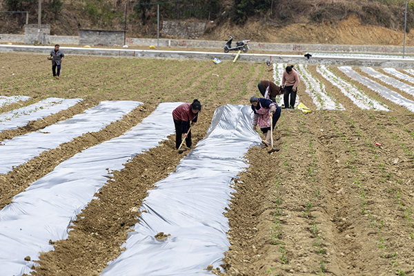村民彭开胜一大早就和妻子来到田里忙活起来,今年他家种了3亩多辣椒和1.8亩的菜玉米,政府还为他们提供了种苗、地膜、土地翻梨等补贴。
