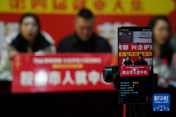 2月11日,鞍山市2025年“春暖钢都·兴企护航”大型招聘会在鞍山人才市场举行。两名主播细心介绍着参加招聘会的重点企业和所需岗位,通过直播镜头带领线上求职者“云逛就业大集”。
