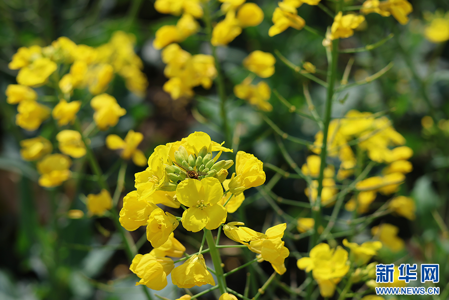 3月2日,贵阳田园路油菜花田油菜花盛开。新华网发(袁梦雨 摄)