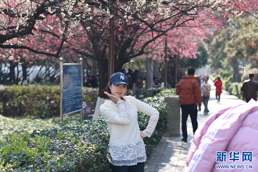 3月2日,贵阳甲秀楼前梅花盛开,吸引市民游客前来打卡。新华网发(袁梦雨 摄)