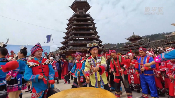近日,在贵州省铜仁市万山区黄道侗族乡丹阳村瓦寨传统村落,当地举行“侗乡春社”暨全民融合系列活动,活动内容有春社祈福、傩戏表演、农耕演绎、山歌合唱、鼟锣展演、吃长桌宴等特色节目,吸引了众多游客。