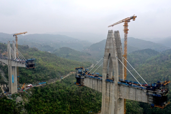 瓮马铁路湘江特大桥索塔全部施工完成(瓮安融媒 供图)