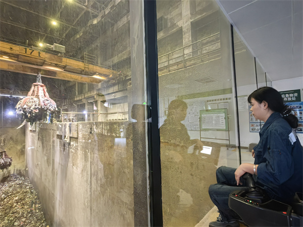 清晨,一辆辆密闭的垃圾清运车从仁怀市各个角落驶向发电厂。在厂区入口,车辆依次经过地磅称重,精准记录下每车垃圾的重量后,缓缓驶入垃圾卸料大厅,工作人员熟练地操作着机械臂,将垃圾抓取并倒入储贮坑。“我们的垃圾池有效容积达1.8万吨,我们把垃圾池分为四个区,卸料后的垃圾我们进行5至7天的发酵,增加有机质含量后,再把垃圾进行投炉燃烧,提升吨垃圾发电量。”仁怀市生活垃圾焚烧发电厂垃圾吊运行班长周训玲说。