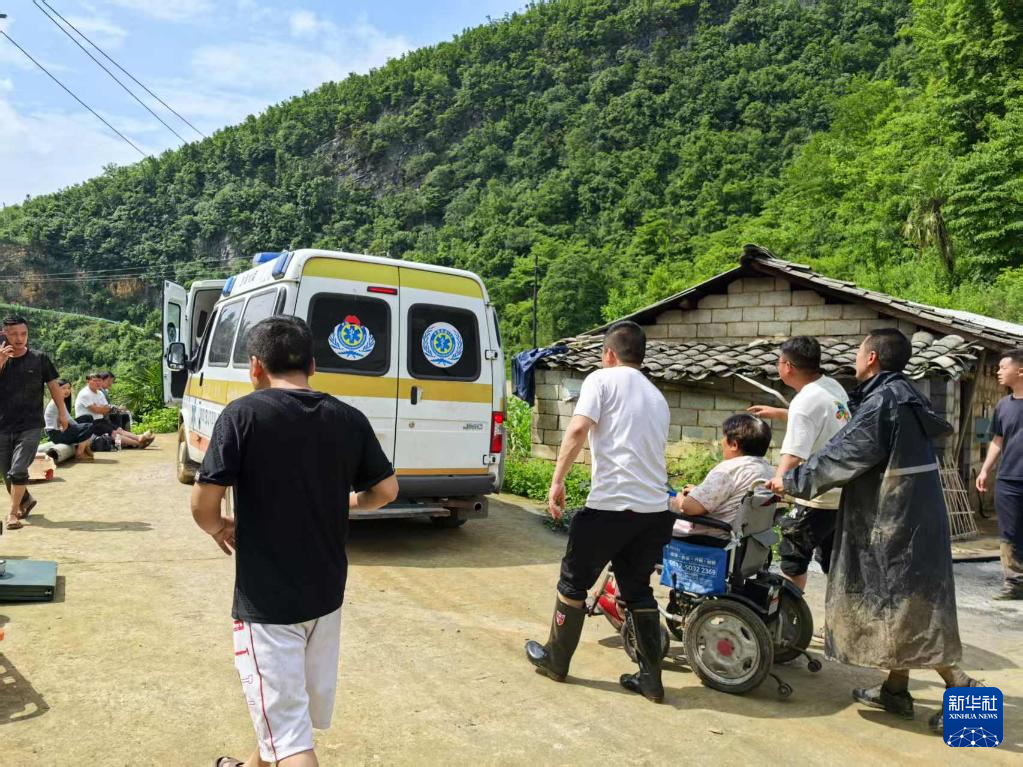 5月22日,救援人员在贵州省大方县果瓦乡庆阳村转移群众。新华社发