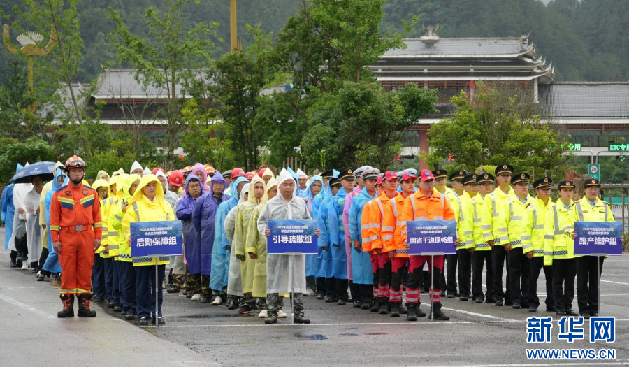 新华网贵阳6月20日电 在全国第24个“安全生产月”活动如火如荼开展之际,6月19日,贵州高速集团联合黔东南州政府,在S63凯从高速西江收费站举行2025年高速公路防汛抢险综合应急救援演练。