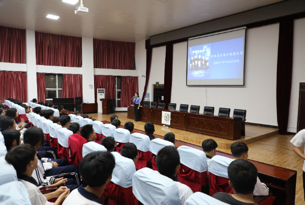 夏日黄昏,贵州省贵阳幼儿师范高等专科学校大礼堂前的梧桐树撑展翠绿伞盖,沙沙作响的叶片筛落斑驳灯影,为夏日的校园增添了灵动与生机,也仿佛是在欢迎前来为该校师生上法治课的贵州省清镇市人民检察院“学姐篱笆墙”护航团的“学姐”们。