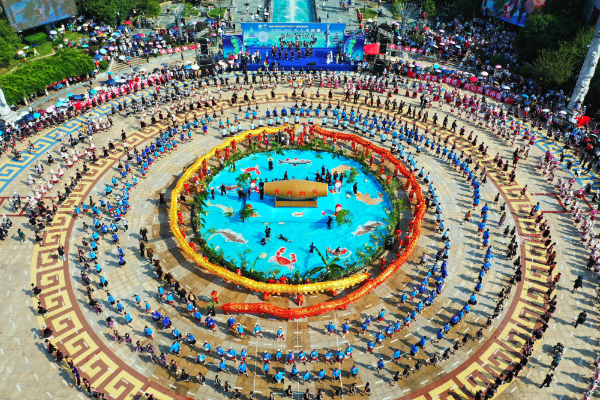 剑河县2025年“六月六”仰阿莎文化节万人水鼓舞现场。(杨元红 摄)