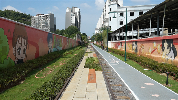 据介绍,花山绿道项目分两标段推进,一标段自黄果树大街铁路道口至学院路口,已于今年1月率先建成开放。该标段巧妙截取原162铁路部分路段,在保留原始风貌的基础上,融入三线文化元素。铁轨旁镌刻着安顺航空发展历程的文字,复古的火车站台复刻了三线建设时期风格,还有承载着城市记忆的三线文化景墙,吸引市民漫步其间,感受历史的厚重。