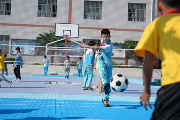 六年级学生王同学一进校门,就拉着同学迫不及待地奔向新操场。运动鞋踩在拼装悬浮地板上,发出清脆而充满弹性的声响。“以前的操场是水泥地,跑步容易摔伤,下雨之后到处是水洼。现在这个新操场又软又防滑,我们终于可以放心踢球啦!”他一边兴奋地说着,一边和同学们在新划定的足球场上开心地奔跑、传球。