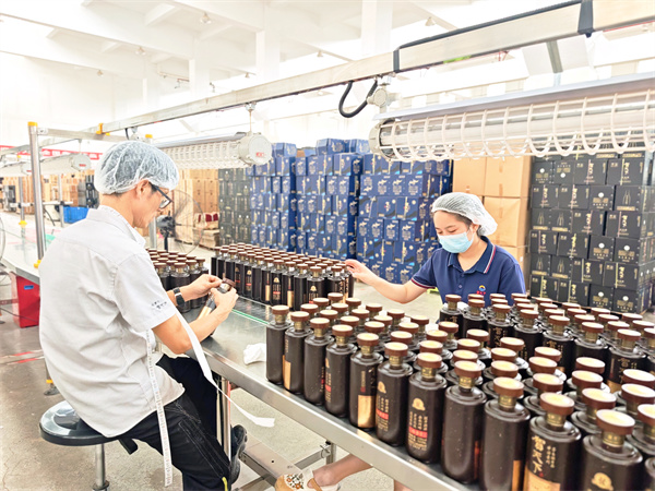 贺天下酒业生产车间工人正在打包。