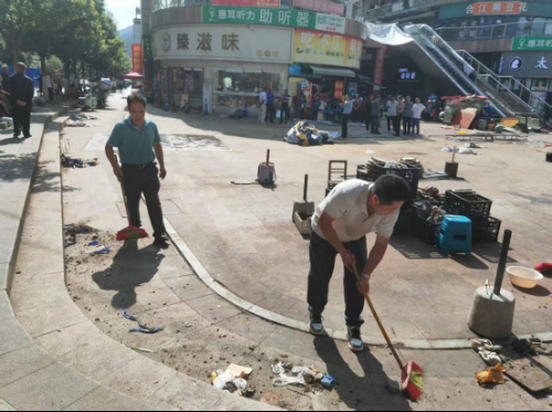 民有所呼,政有所应。为了解决居民合理诉求,县住房和城乡建设局经过多次现场走访调查和会议研究,确定将纠治工作分成两步走,第一步,由城管区域同志在8月底之前,以针对性地发放宣传折页、面对面解释说服等多种方式,教育引导商贩服从统一管理,到指定区域内经营。第二步,对拒不配合工作仍持续在禁摆区域摆摊经营的部分商贩,在多次劝导无果后,由县住房和城乡建设局依法对占道摆摊商贩进行依法搬离,将其搬移到新规划区范围内。于是2025年9月9日,紫云自治县住房和城乡建设局统一行动,以人为本,疏堵结合,对“印象紫云”周边摆摊乱象开展集中纠治专项行动,在纠治行动中,工作人员重点对占道经营的流动摊贩,出店经营的商户进行协助收摊、免费运送,并现场耐心劝导摊贩,要求他们遵守相关规定,还道于民,不得占用公共道路开展经营活动,对于不听劝导的商贩,执法人员免费提供车辆协助其搬移到指定区域经营。同时,在执法过程中,对占道经营、乱堆乱放等违规现象存在的安全隐患做了讲解,教育群众规范经营,打开思想顾虑,共同维护好市场秩序,营造紫云良好营商环境,行动开展当天,得到了广大居民的充分理解、支持和一致好评,部分好心居民还现场协助打扫环境卫生,纠治工作进展十分顺利。