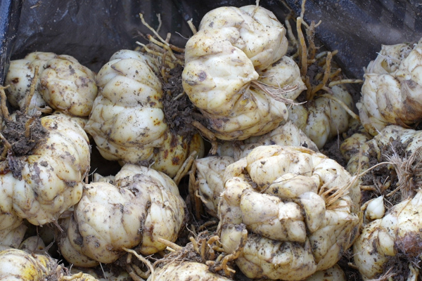采挖的百合种球色泽鲜亮、个头饱满。(何小雨 摄)