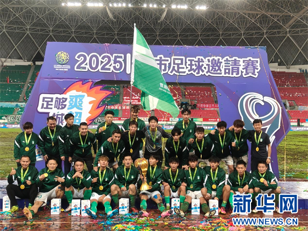 新华网贵阳9月26日电 9月25日晚,2025城市足球邀请赛(以下简称“城超”)总决赛在贵阳市奥体中心圆满落幕。东道主贵阳咖啡队凭借第82分钟的制胜进球,以1:0战胜北海公仔饭店队,夺得本届赛事冠军。