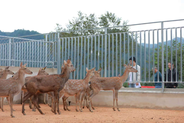 养殖户彭祖文一边添加精心配比的饲料,一边仔细观察每头鹿的精神状态。“这批梅花鹿是9月23日刚引进的,包括13头公鹿和18头母鹿,都是2-3岁的优质种鹿。”彭祖文介绍,鹿舍依山而建,环境清幽,为梅花鹿生长提供了良好的自然条件。