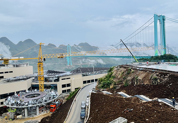 正在建设中的花江峡谷大桥及峡谷酒店。