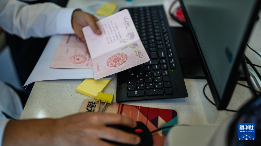 贞丰县民政局花江峡谷大桥婚姻登记巡回点的工作人员在制作证件(9月28日摄)。新华社记者 陶亮 摄