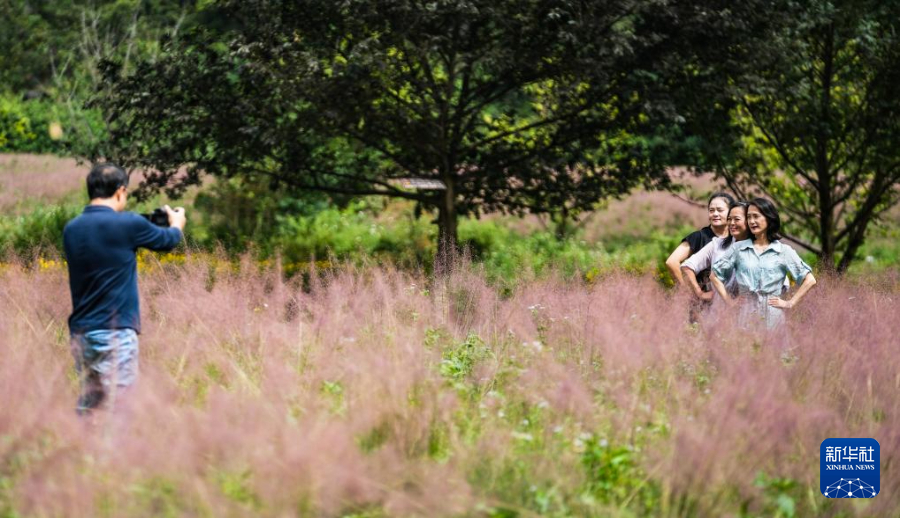 10月3日,游客在贵州省黔南布依族苗族自治州长顺县神泉谷景区内拍照留念。新华社记者 陶亮 摄