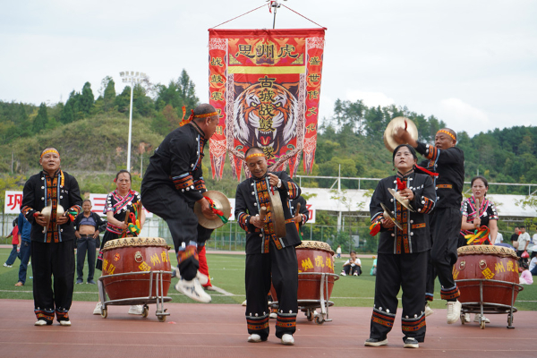 对许多参与者而言,这场巡演不仅是展示技艺的舞台,更是一次身份认同的回归。黔龙土司战鼓队队员田田额头沁汗,手中鼓槌却愈发有力:“我喜欢这股热闹提气的劲儿!现在村里50多人组成了战鼓队,只要有演出就积极参加。不光锻炼身体,还拉近了邻里关系,感觉自己也在为家乡出力。”
