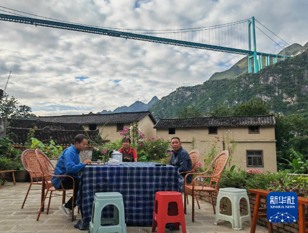 今年国庆假期,新的世界第一高桥——贵州花江峡谷大桥成为热门打卡地,桥下的贞丰县平街乡花江村也迎来旅游热。自媒体博主谢朝卿在村里租用的这处民房因抬头就能看桥景,不少人慕名而来。