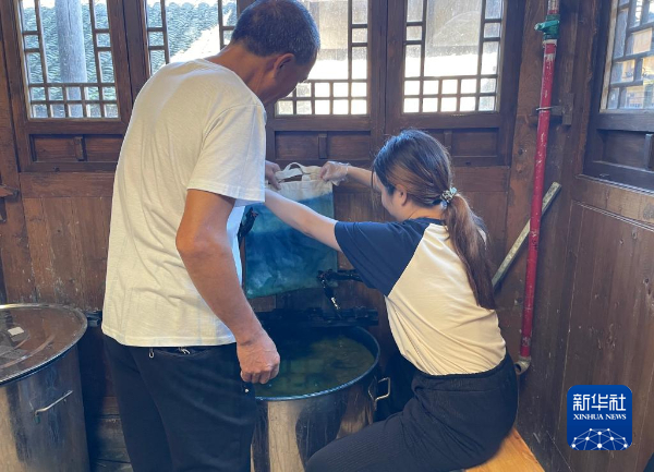 10月6日,不少学生在乌纸坊体验古法造纸。新华社记者 骆飞 摄