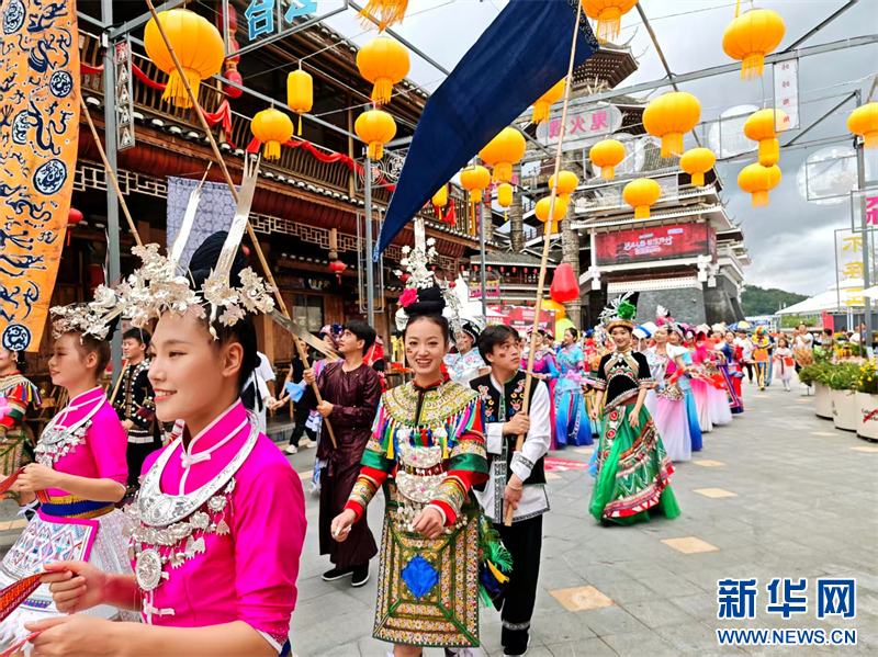 多彩贵州城巡游队伍中,身着民族盛装的演员们以舞步和歌声传递热情,为游客递上生动的文化名片,为旅途增添亮色。新华网发