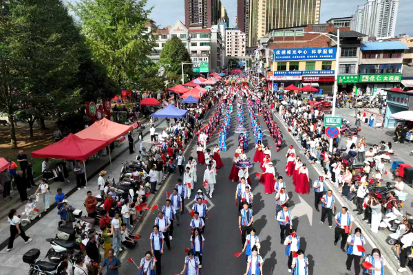 “双节”期间,贵州黔南“秋饮穿越酒”独山花灯暨“村戏”展演活动在独山主城区举行,活动以“巡游+展演+市集”为主线,汇集重庆、广西、云南、独山等多地表演者,组织27支巡游队伍开展巡演,沿途呈现舞狮、“踩灯”及现代花灯歌舞,吸引群众驻足互动。
