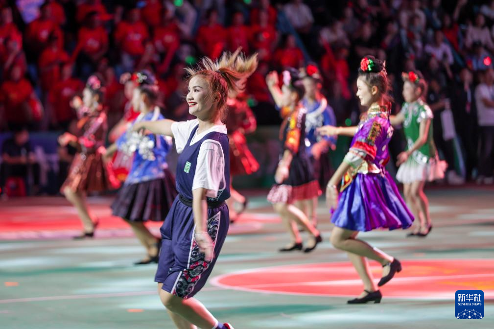 10月12日,演员在比赛前表演。新华社发(袁福洪 摄)