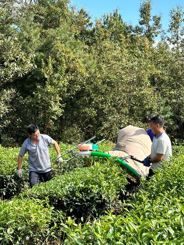 走进九仓镇万亩茶园,茶叶长势正好,只见采茶工人手持智能化采茶机,沿着茶垄匀速推进,鲜嫩的茶青瞬间被精准采收,顺着输料管落入腰间的集茶布袋,不到5分钟就采满一行茶树。“我们采茶叶按照厂里面的标准采摘,1台机器3个人采1天可以采茶青3000多斤,按照0.6元/斤收。”采茶工任世勇说。