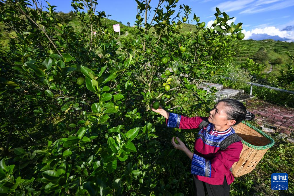 10月15日,村民在望谟县蔗香镇青柠檬基地采摘柠檬。新华社记者 杨文斌 摄
