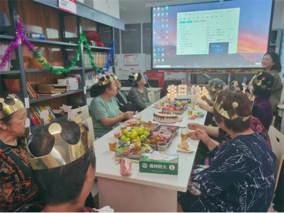 此外,环兴社区也于同日开展了特殊家庭庆生活动。老人们在歌声中许愿、切蛋糕,工作人员与他们亲切交流,了解生活近况与身体情况,鼓励他们保持积极心态。居民们纷纷感慨地说:“这样的活动让我们感觉没有被社会遗忘,心里暖暖的,生活也更有盼头了。”