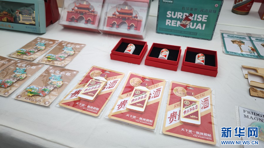 开幕式现场展示的遵义酒文创产品。新华网 卢志佳 摄