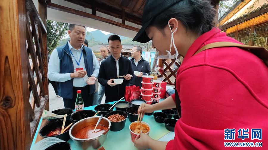 与会嘉宾在衡昌老烧坊街区品尝遵义非遗美食。新华网 卢志佳 摄