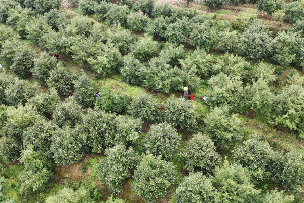 “我们12年就开始种油茶,目前规模有700多亩了。”岑巩县羊桥土家族乡油茶种植基地种植户唐绍芬介绍,霜降前后,每年到了这个时候,就是油茶的收获季节,这个时候出油率最高,品质是最好的,一般一个星期能够收完。“经过这么多年的管护,每亩亩产在1000多斤左右。此外,我们这个基地,每年除草、施肥、管护都需要大量人工,能给周边百姓提供两三百个就业岗位。”
