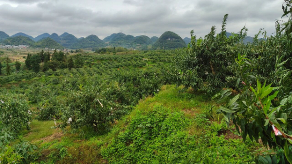 据了解,这片桃园几年前还是一片荒废的山坡,只有一些稀疏的树木。2021年,退休后的龚婷夫妇决定将这片土地流转过来发展果树种植。据普定县鸡场坡镇果骂村桃园负责人龚婷介绍,第一年开垦土地,第二年种苗,今年是第五年,终于见了成效,硕果累累。