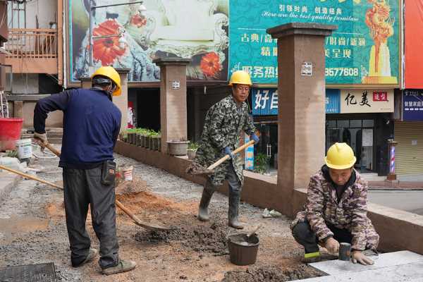 金凤路的“地下革命”,与地面的安居工程遥相呼应。走进县政府安居工程片区,翻新的楼栋整洁明亮,青石板路面铺装、新围墙粉刷等施工正酣。