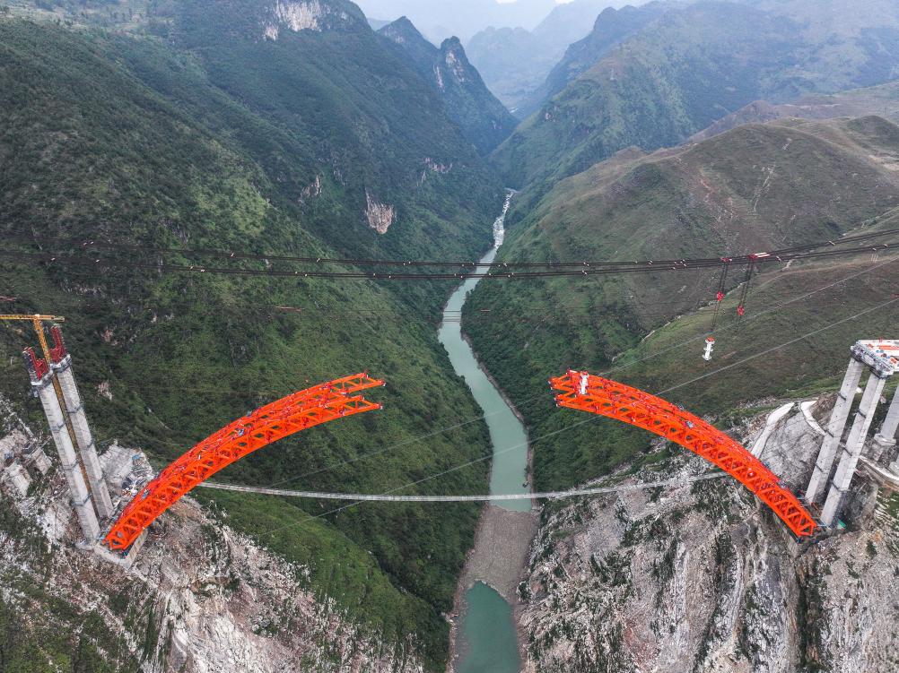 目前,由贵州桥梁集团承建的安顺至盘州高速公路古牛河特大桥项目建设进展顺利,大桥主拱圈预计于今年年底合龙。