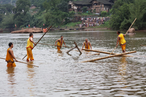 2021年入选国家级非遗的“赤水独竹漂”,明清时是船夫穿梭浅滩的运输绝技,如今在彭刚、陈磊等传承人手中,化作兼具竞技与美感的“水上芭蕾”,端午时节与赛龙舟、竹竿舞相映成趣,游客亦可踏竹浅滩,体验一把“一苇渡江”的豪情。